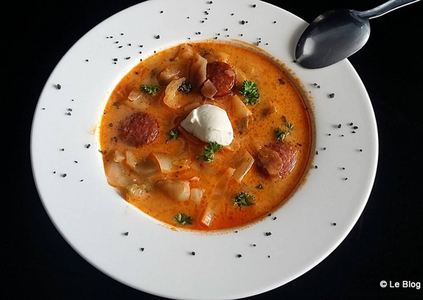 Soupe au chou blanc et à la saucisse fumée