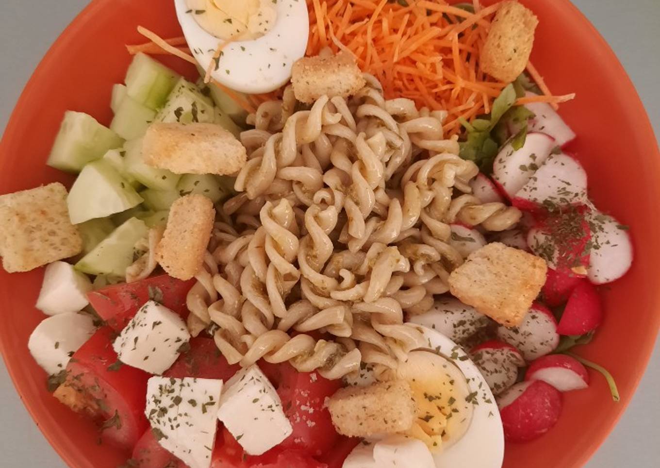 - Rajoutez la portion de pâte souhaitée dans le milieu de la salade