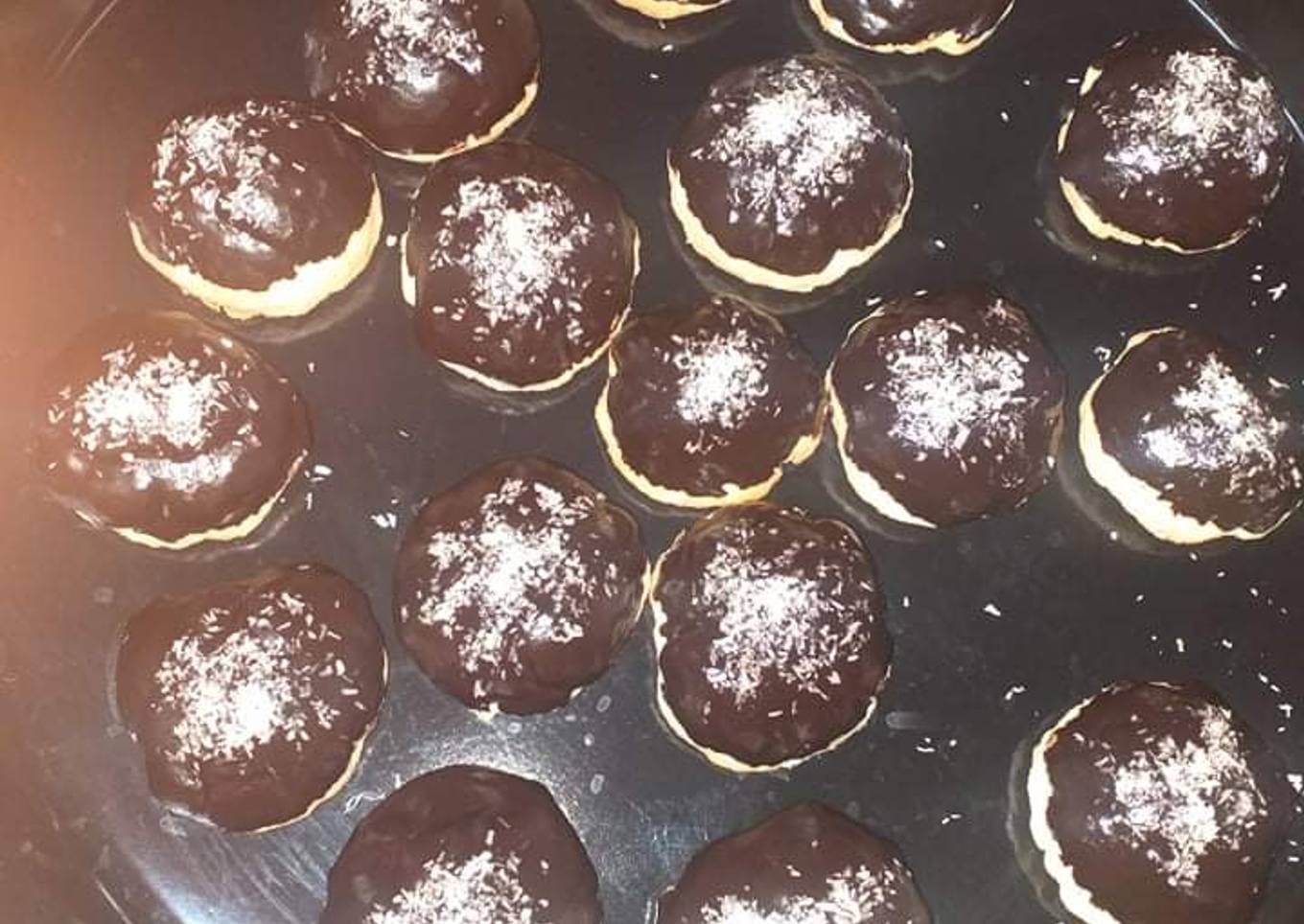 NB: le biscuits doit être légèrement doré en dessous sec et blanc par-dessus. - Une fois cuits, laisser refroidir et tremper les dans du chcolat fondue, saupoudré de noix de coco et bon appétit.